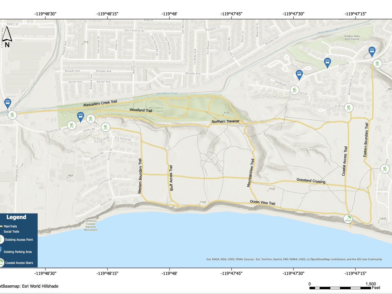 Interactive tools to navigate trails, bluff paths, and public entry points throughout the mesa.